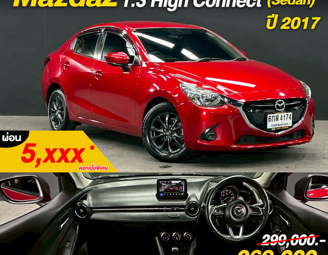 Mazda2 1.3 High Connect (Sedan) ปี 2017 // ราคาดีผ่อน 5 พัน เก๋งสปอร์ตดีไซน์สวย ประหยัดน้ำมัน ออปชันครบ ขับสนุกสไตล์ Mazda! ได้รถมือเดียว เจ้าของเดียว สภาพพร้อมขับ